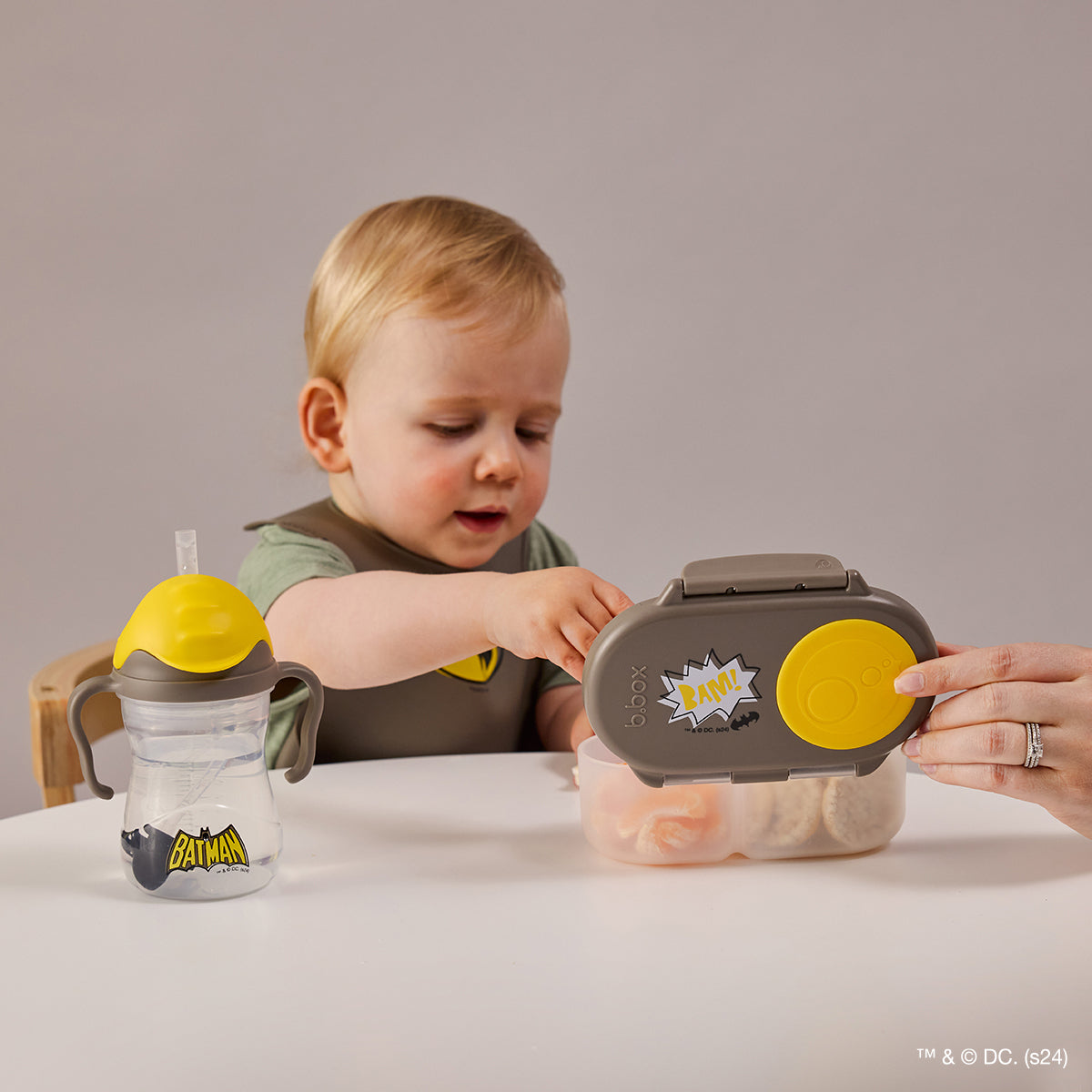 BAM! When lunchtime needs a Super Hero, Batman saves the day with lunch and hydration accessories inspired by the Caped Crusader, kids will be powered up for the playground!